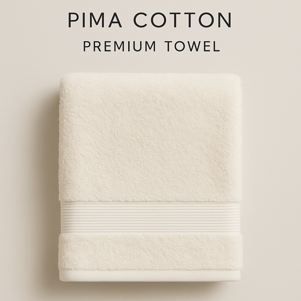Toalla en tono beige suave con bordes definidos y líneas verticales que estilizan su apariencia. Su color neutro y su diseño refinado la hacen versátil para cualquier ambiente, aportando serenidad y elegancia.